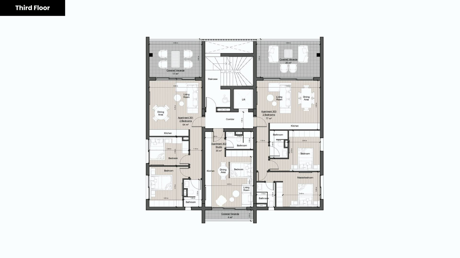 | 303 | Apartment | 3 | 1 | 2 | 2 | 77 | 20 | - | 97 | - | - | - | |
