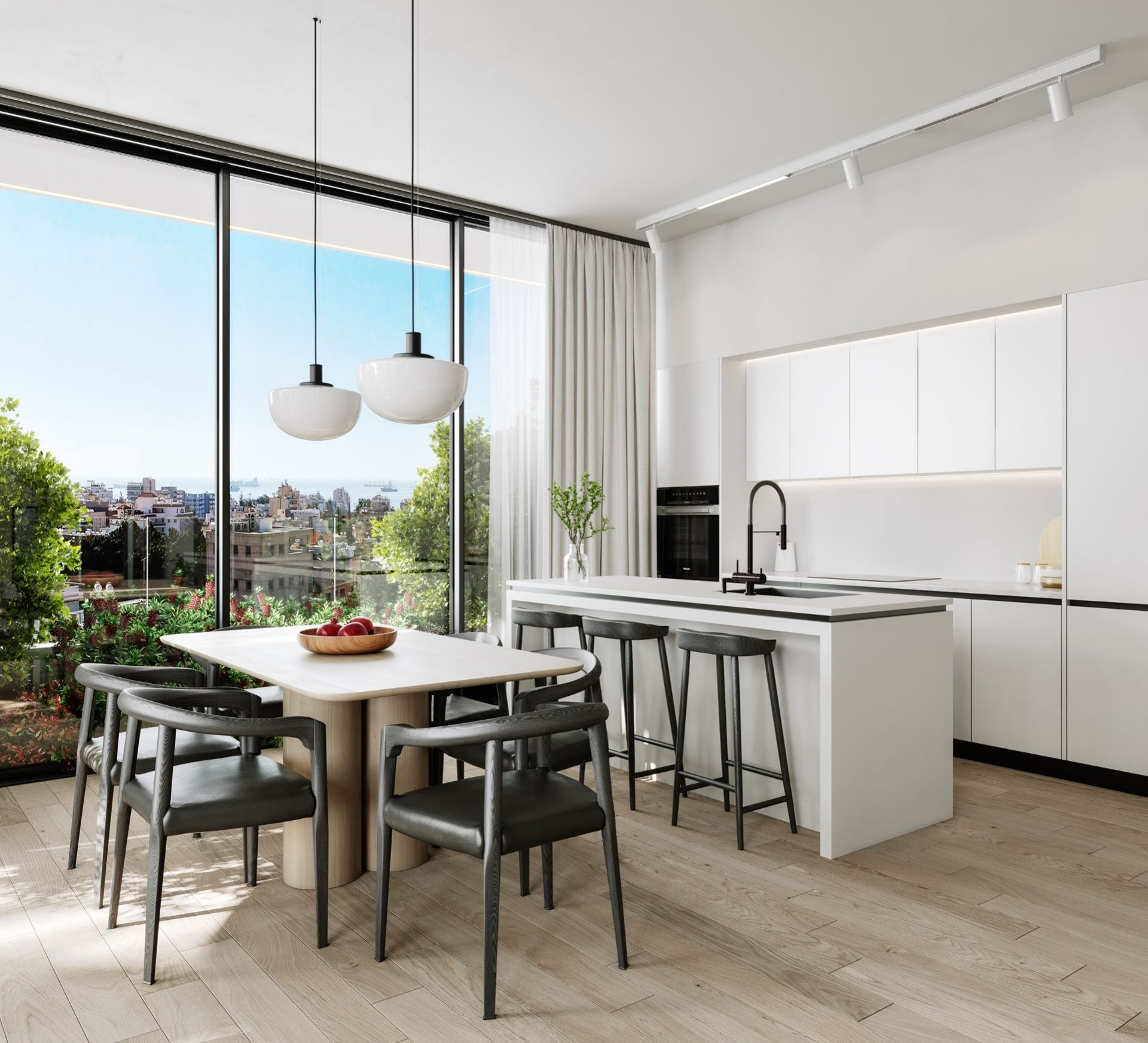 This luxury residential block comprises eleven apartments for sale in cyprus and two extraordinary 4 & 5 bedroom penthouses, offering 360-degree city views from expansive balconies.