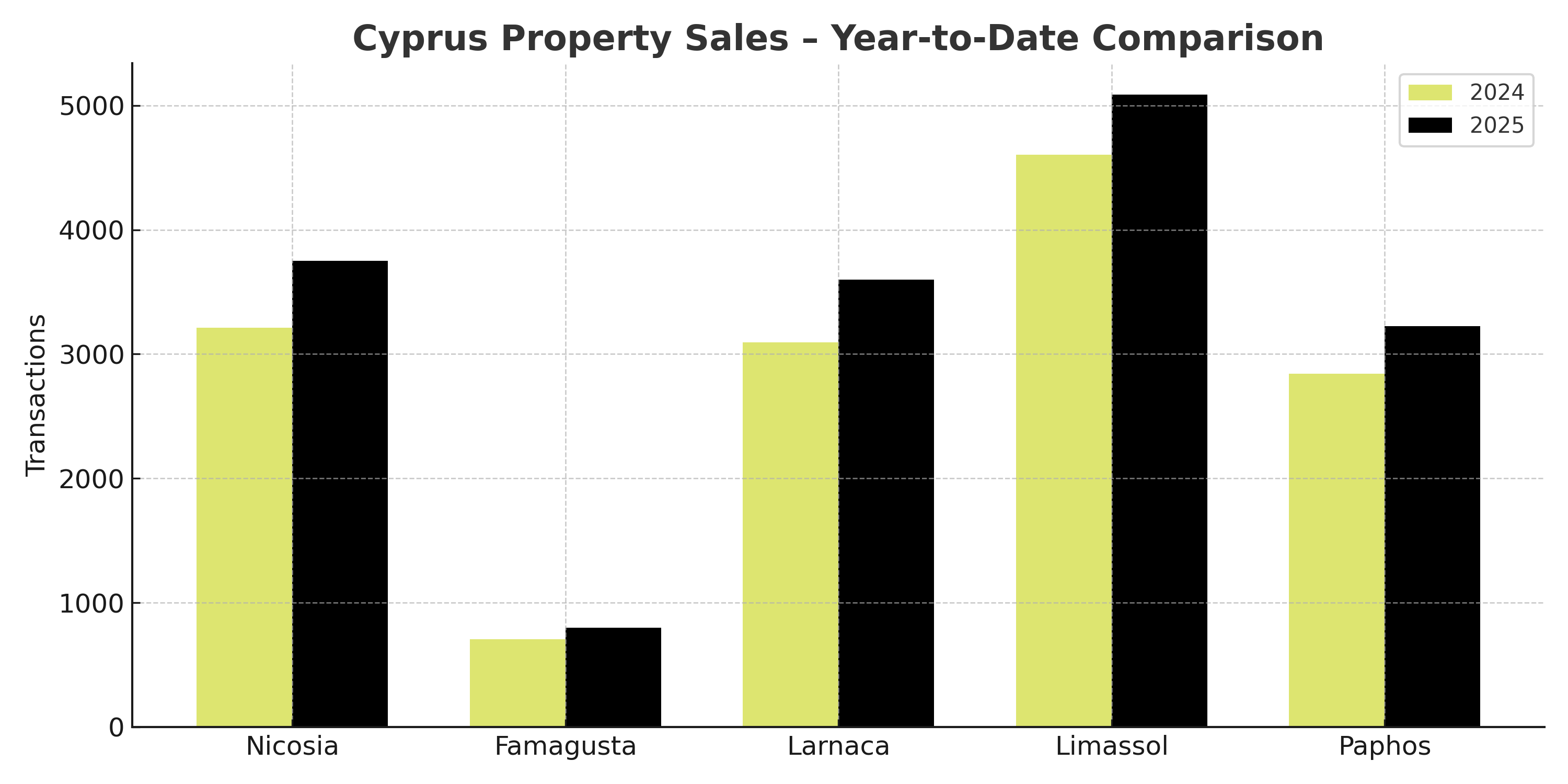 Despite a mild reduction in sales, Limassol continues to lead the market, registering the highest number of monthly transactions. This reflects its ongoing appeal as the commercial, financial, and lifestyle hub of Cyprus.