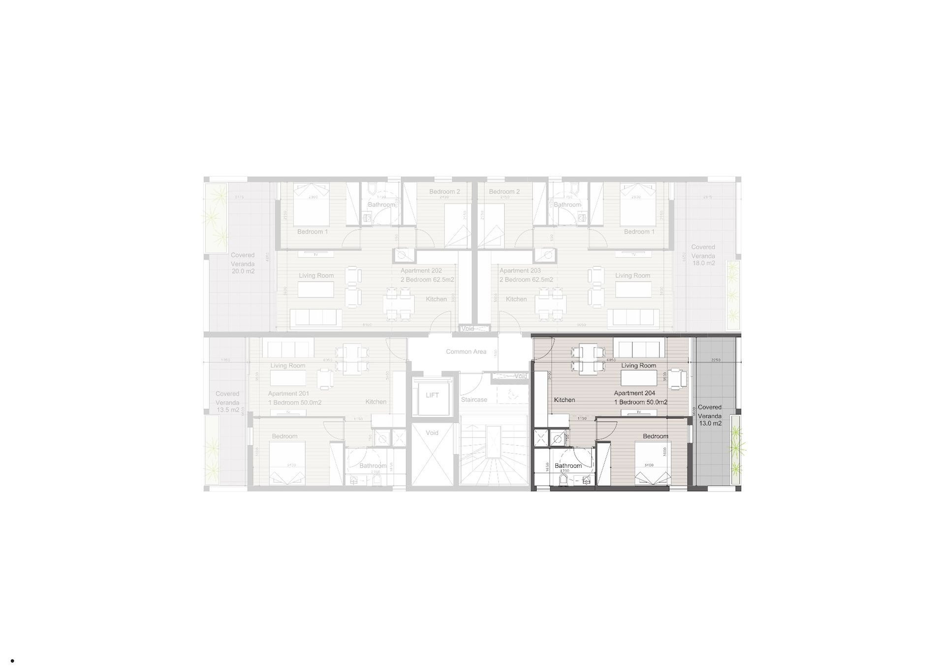 | 204 | Apartment | 2 | 1 | 1 | 1 | 50 | 13 | - | 3 | 66 | - | - | - | |