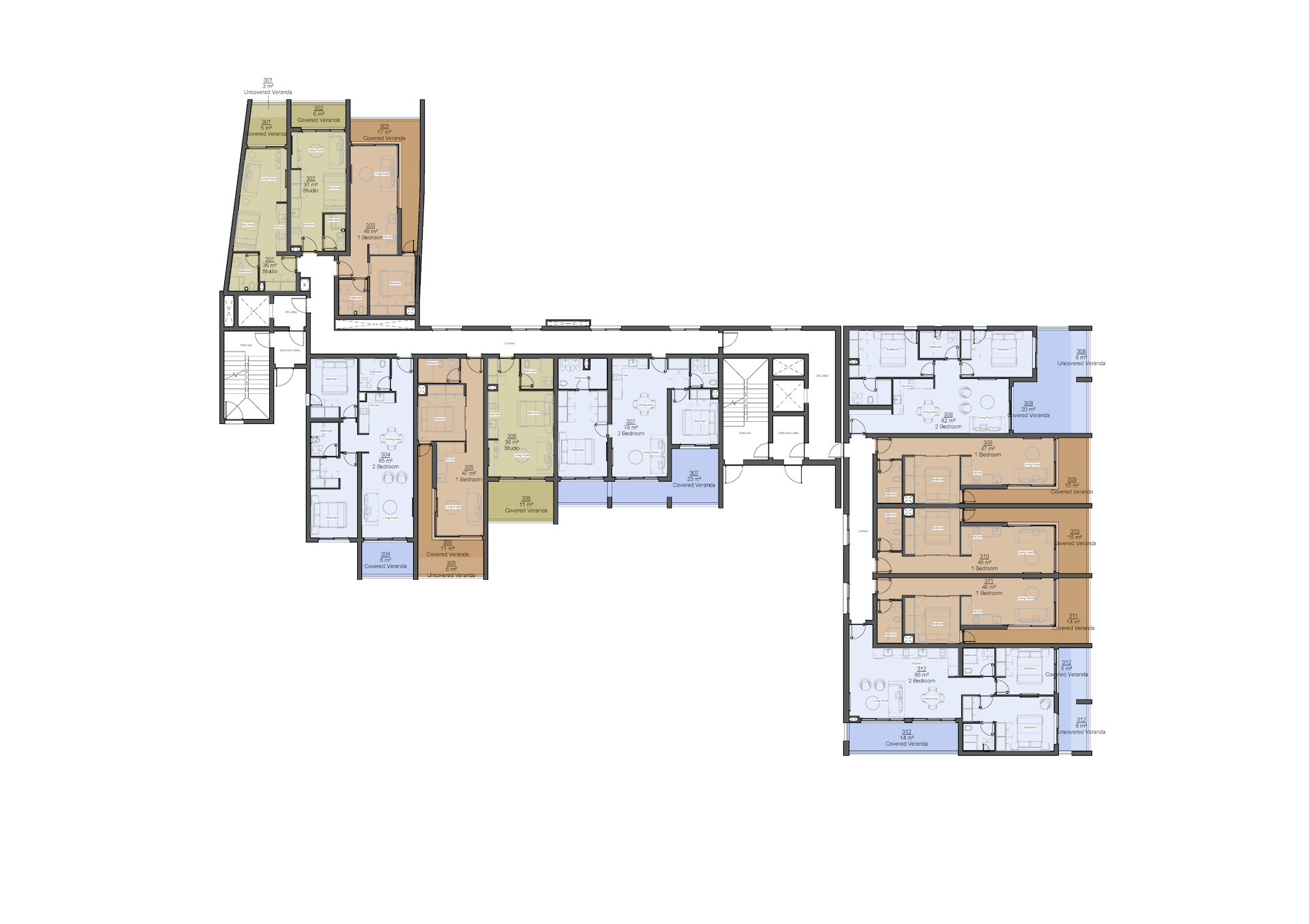 | 306 | Apartment | 3 | - | Studio | 1 | Communal | 36 | 12 | - | 48 | - | - | - | |