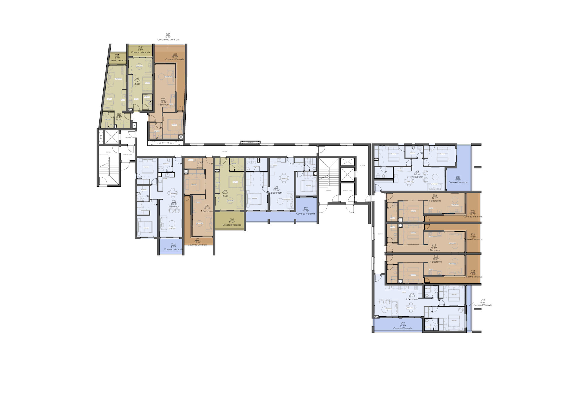 | 206 | Apartment | 2 | - | Studio | 1 | Communal | 36 | 12 | - | - | - | - | - | |