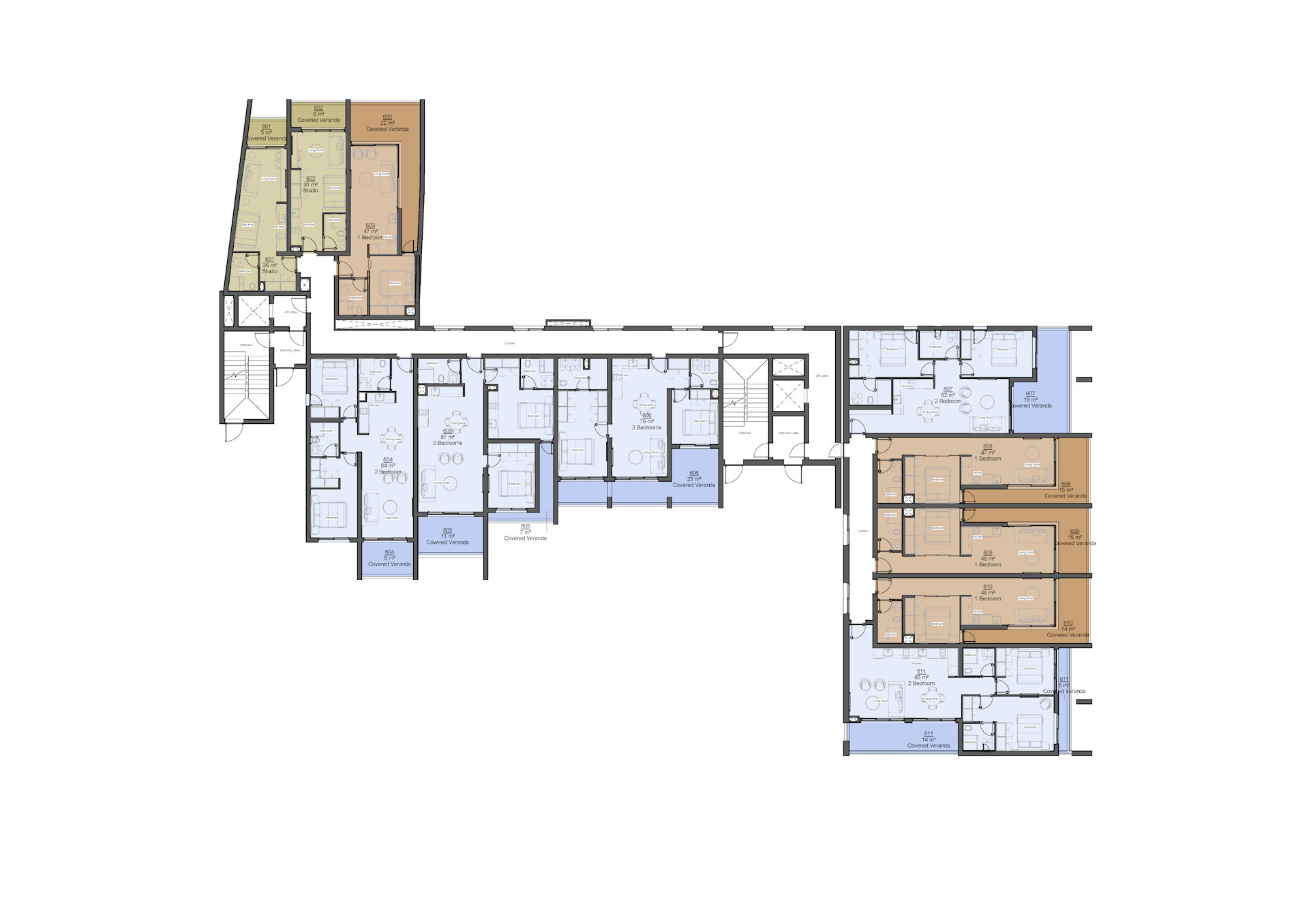 | 604+605 | Apartment | 6 | 1 | 4 | 4 | Communal | 171 | 26 | - | 197 | - | - | - | |