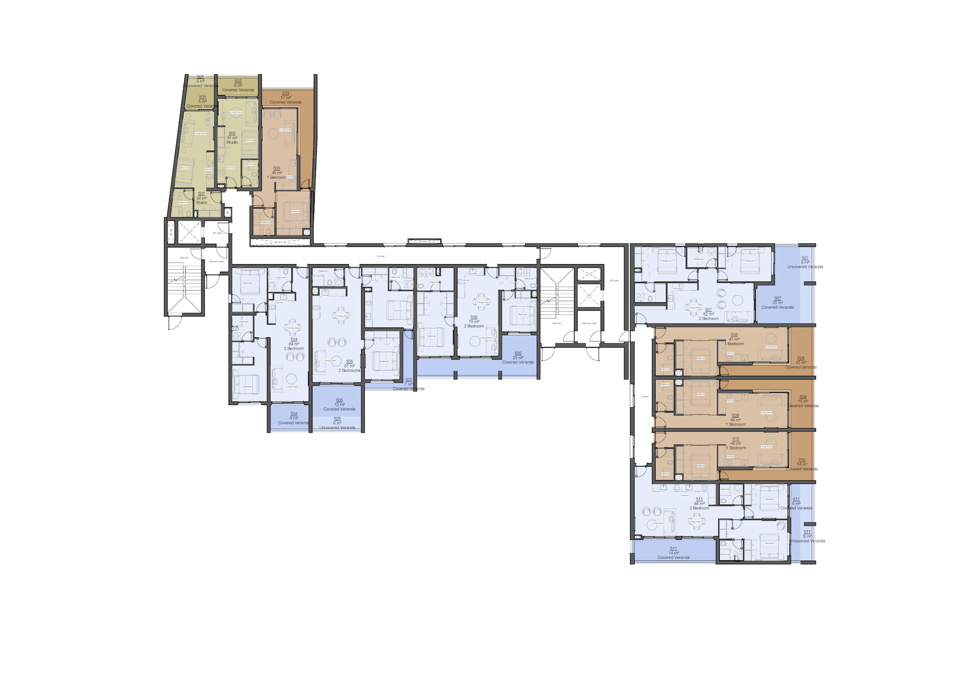 | 504 + 505 | Apartment | 5 | - | 4 | 4 | Communal | 171 | 27 | 6 | 204 | - | - | - | |