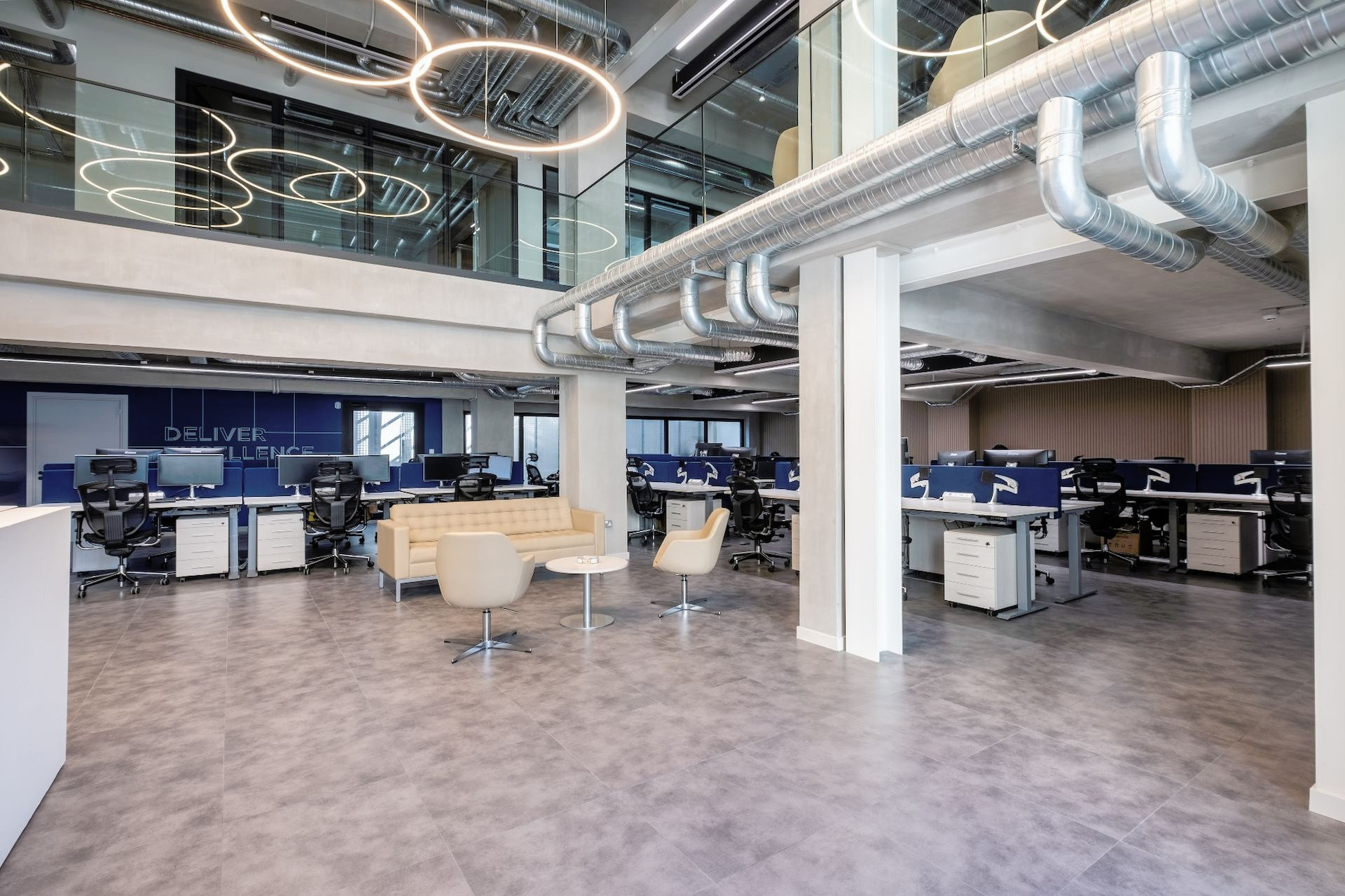 The facility is equipped with the latest technology, ergonomic furnishings, and high-speed internet.